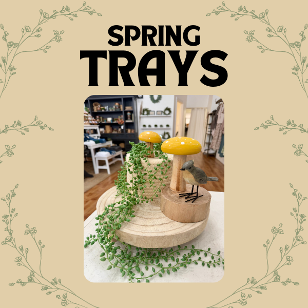 Bring the serene magic of nature with the Enchanted Forest styled tray. Featuring charming yellow polka-dot mushrooms, cascading greenery, and a sweet little bird, this arrangement brings the playful beauty of a woodland retreat right into your home. The natural wood risers create dimension, making this tray feel like a miniature fairy-tale forest ready to brighten up your space. Whether placed on a coffee table, entryway, or kitchen island, this curated piece adds a delightful touch of nature-inspired whimsy to your home.