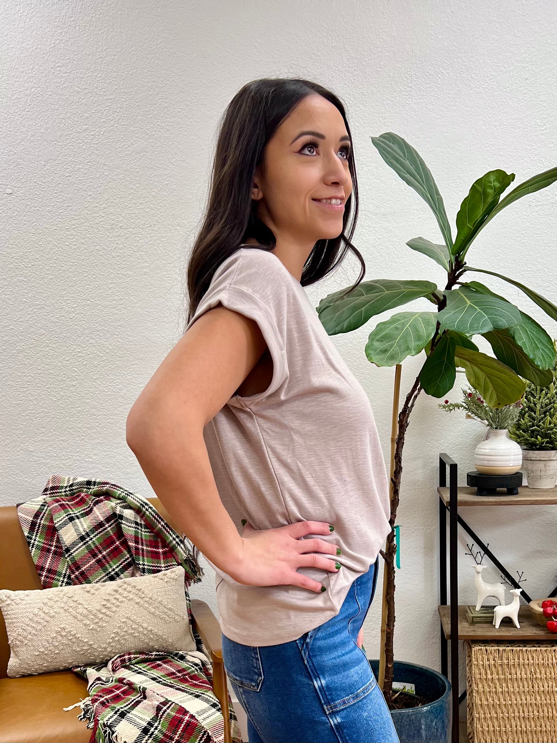 This Ash Mocha Modal Rolled Sleeve Tee features a soft neutral ash mocha hue with luxurious modal fabric construction and relaxed oversized silhouette that brings effortless versatility to any casual wardrobe. The lightweight breathable material and crew neckline create easy everyday style, while the rolled cuff sleeves and drapey fit add laid-back appeal perfect for year-round wear.