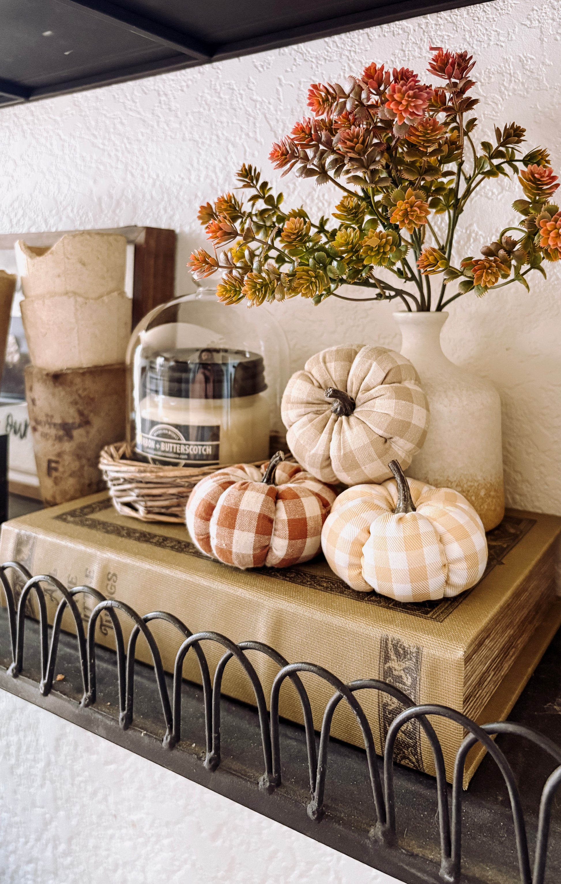 The charming buffalo check pumpkins bring just the right touch of preppy farmhouse style, while the vintage book box adds that collected-over-time sophistication that makes guests think you've been curating beautiful things for years. The glass cloche? Pure magic, it turns ordinary objects into treasured displays.