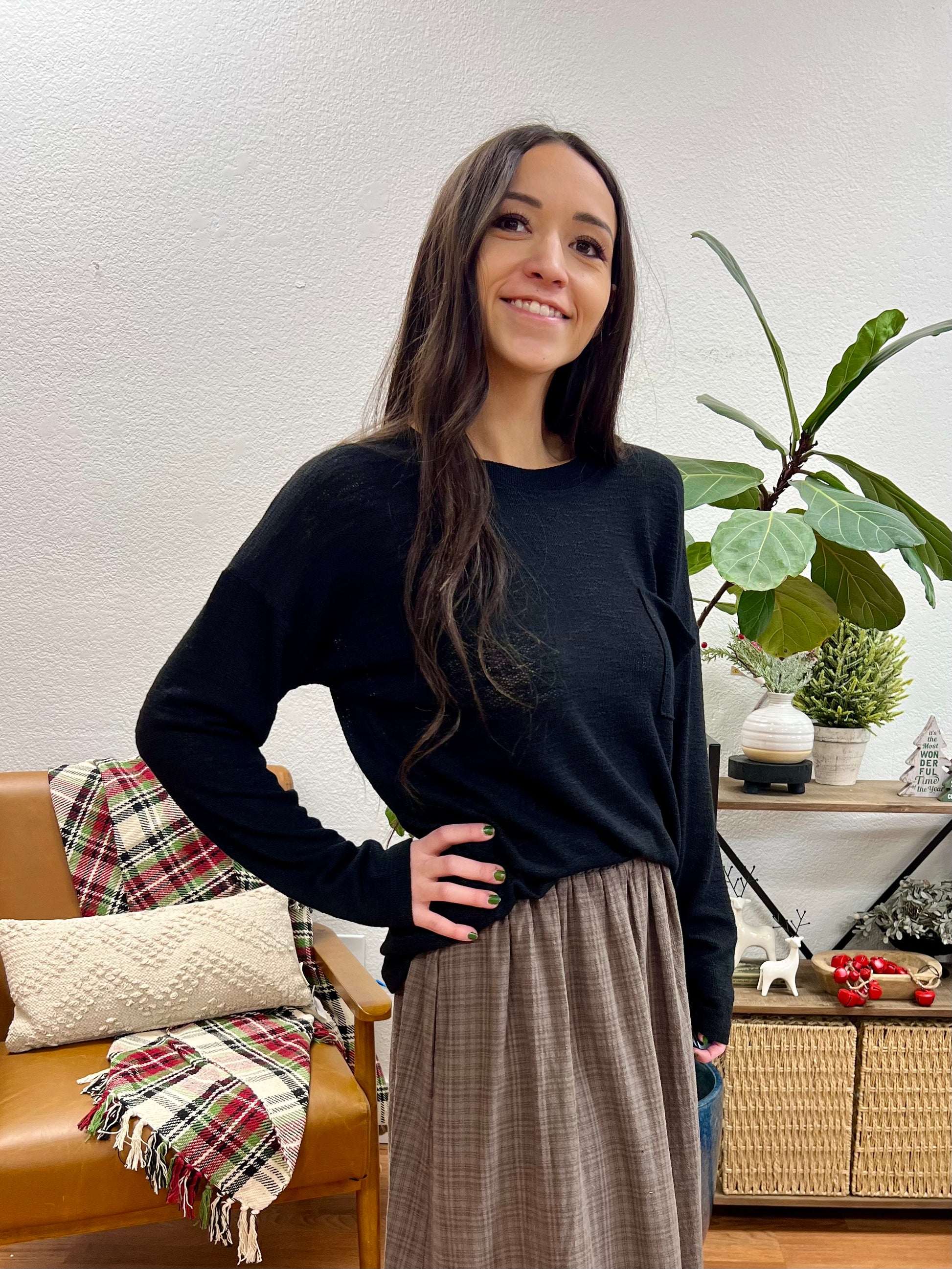 This Black Hacci Slub Long Sleeve features a classic black hue with textured slub knit fabric and relaxed oversized silhouette that brings effortless comfort to any casual wardrobe. The soft lightweight construction and crew neckline create easy everyday style, while the functional chest pocket and long sleeves add practical detail perfect for year-round wear.