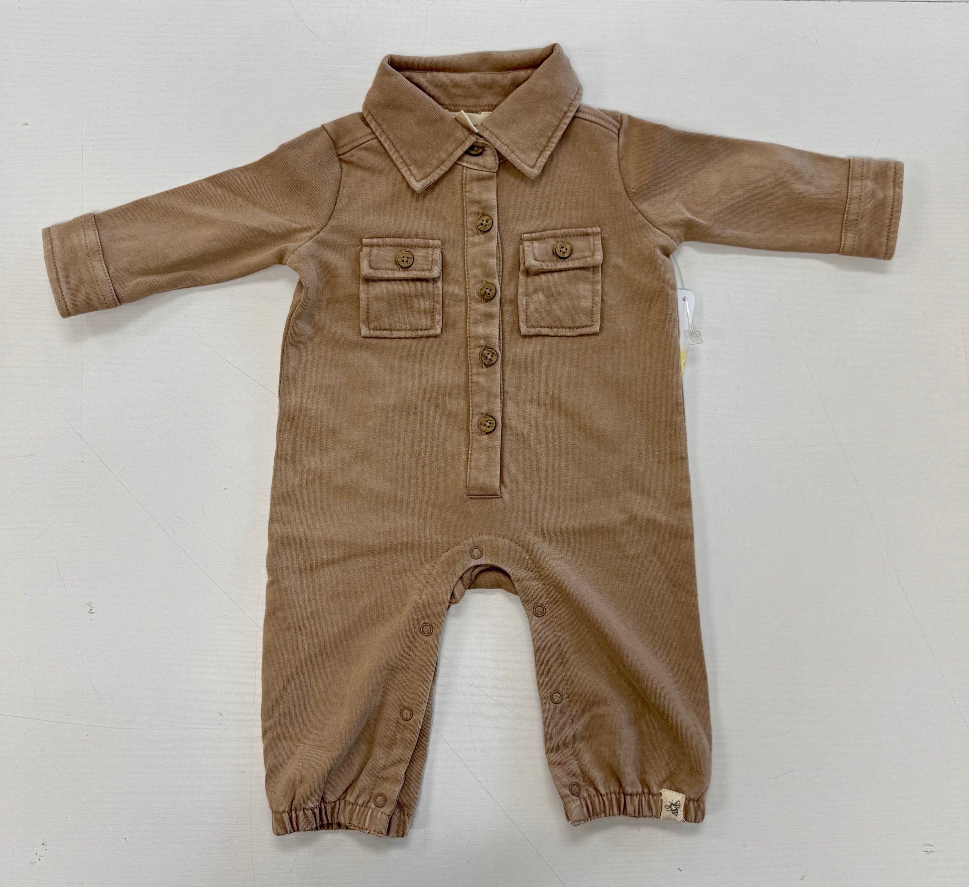 This Boys Acid Wash Jumpsuit features a vintage-inspired acid wash finish in soft organic jersey cotton with functional chest pockets and an elevated collar that brings cool aviator vibes to your little adventurer's wardrobe. The button-down front and adjustable cuffs create a polished look, while the snap closures at the diaper opening make quick changes effortless for busy parents.