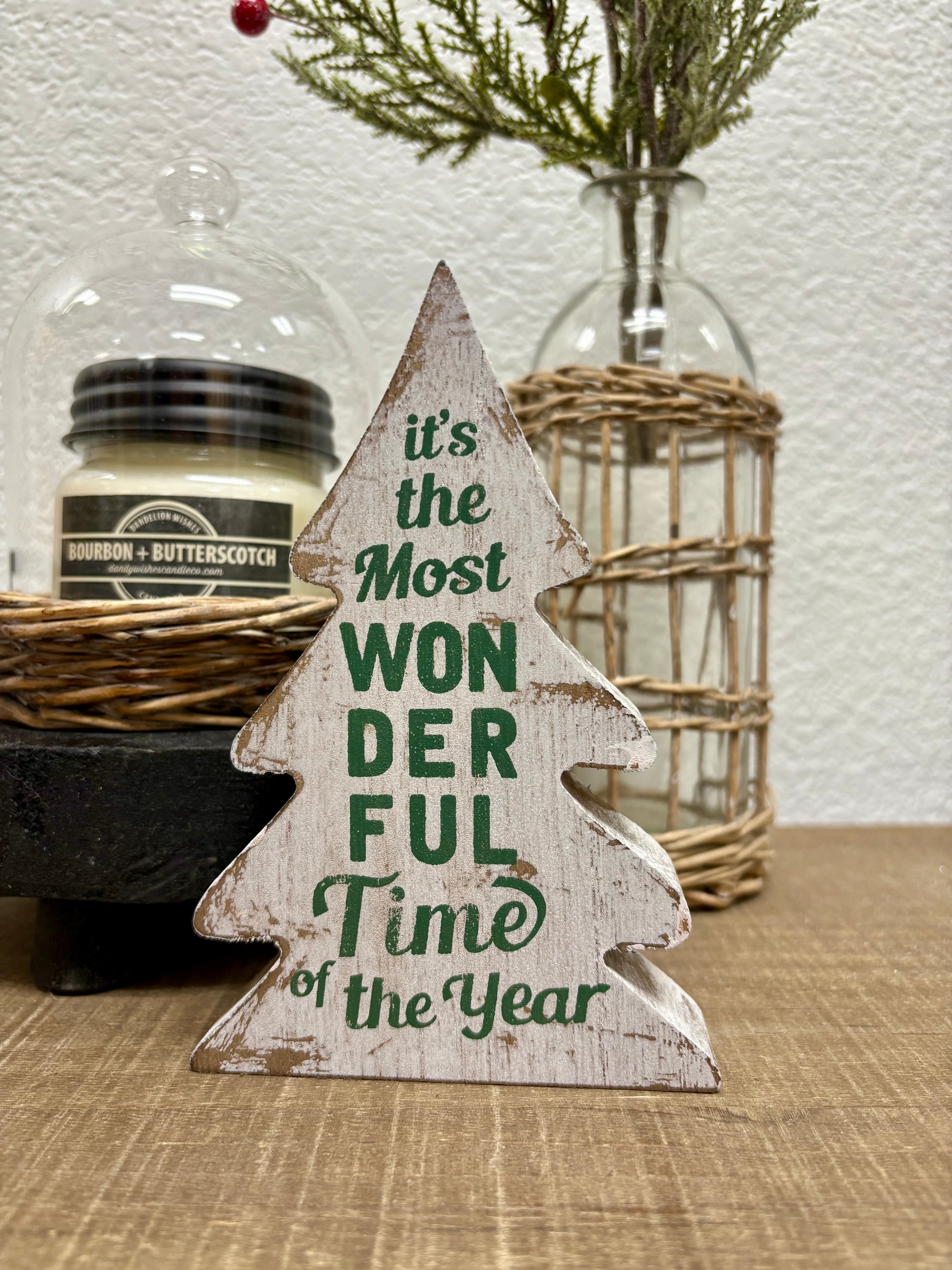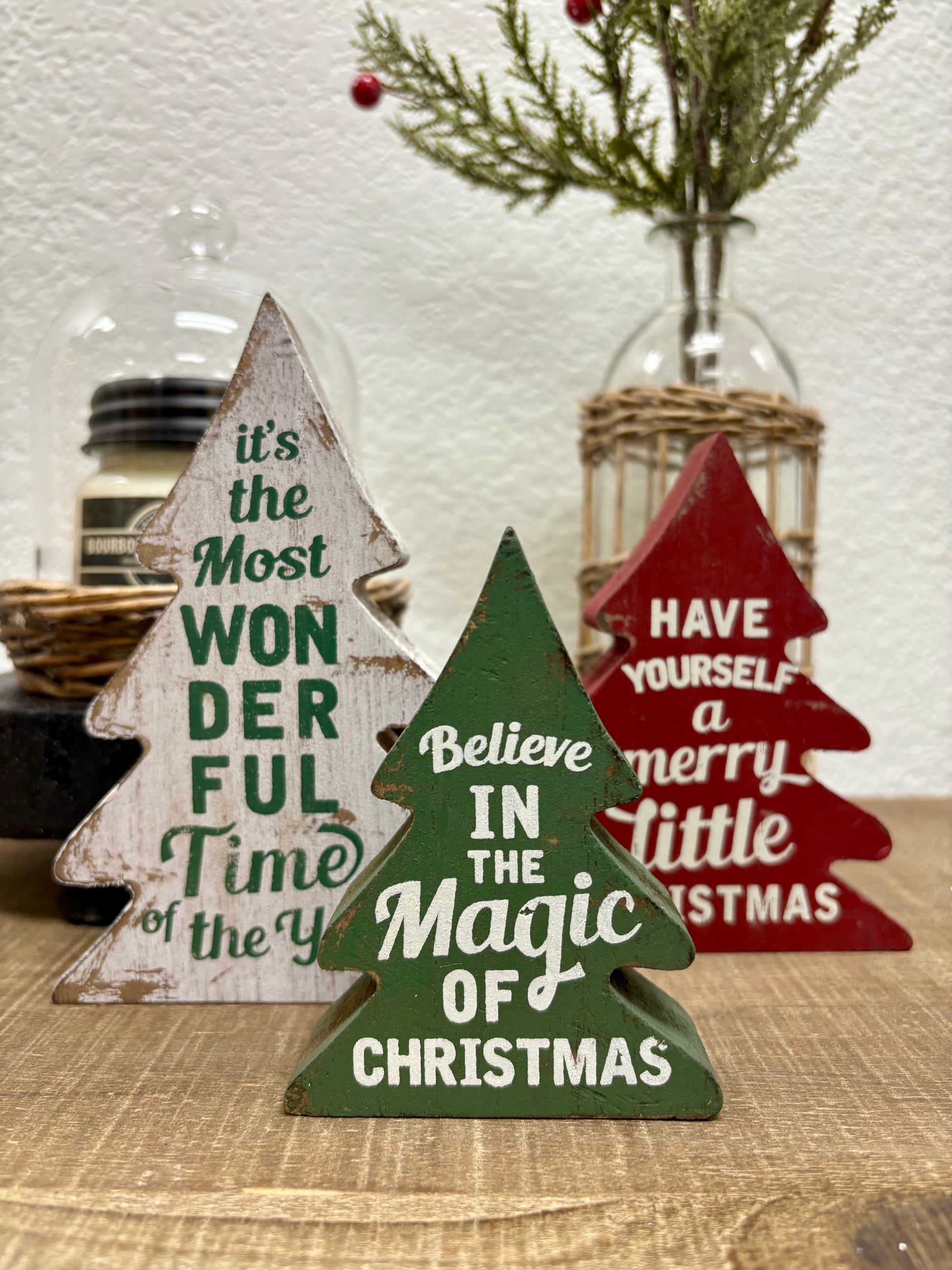 Celebrate the season with this charming set of Christmas Carol Wooden Trees. Each tree features a festive saying, perfect for adding a joyful touch to your holiday decor.