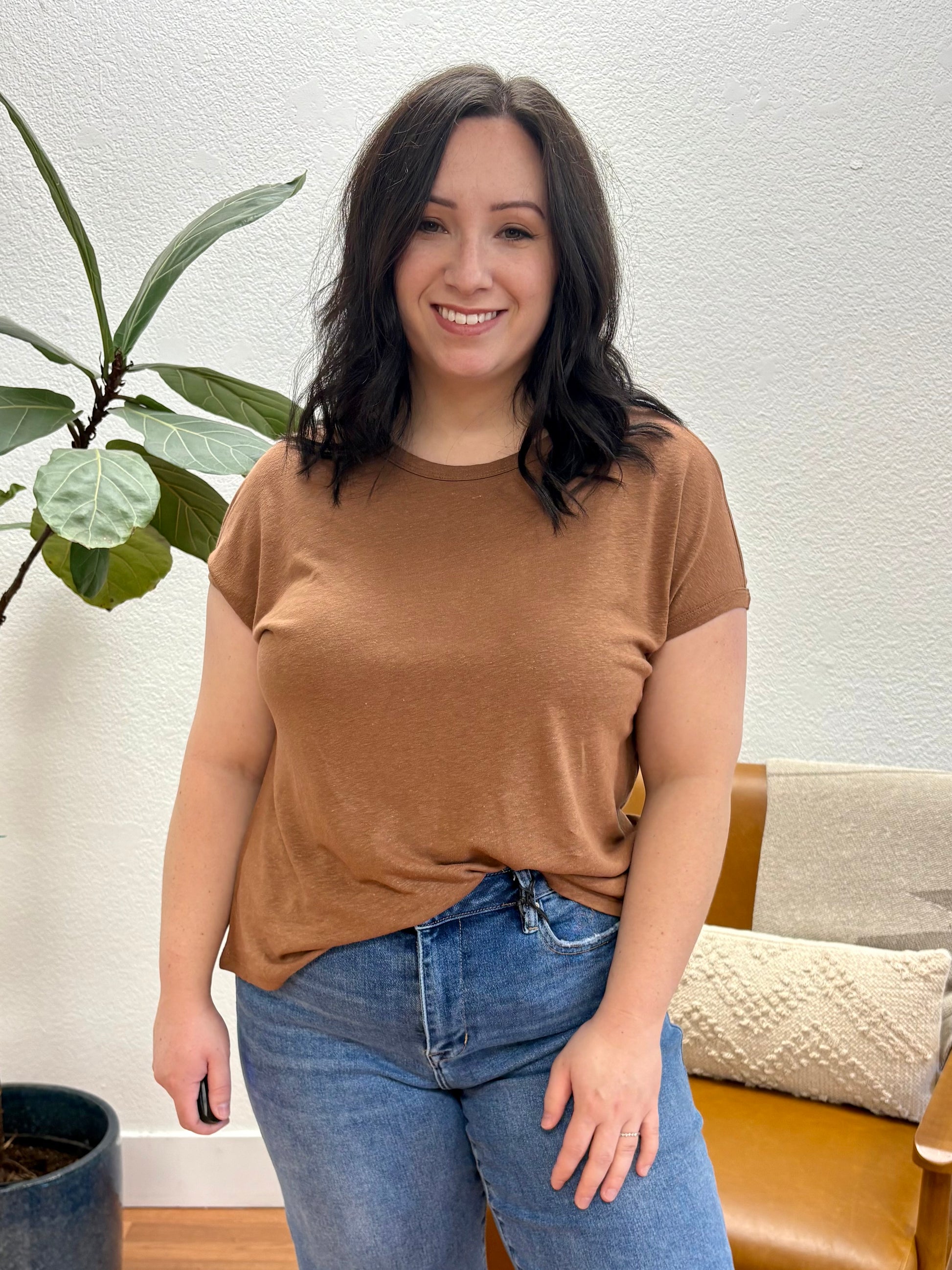 This Clay Linen Boxy Tee in rich clay brown features the same soft linen blend and relaxed fit you love, but in this gorgeous terracotta inspired shade that feels like fall in the most beautiful way.
