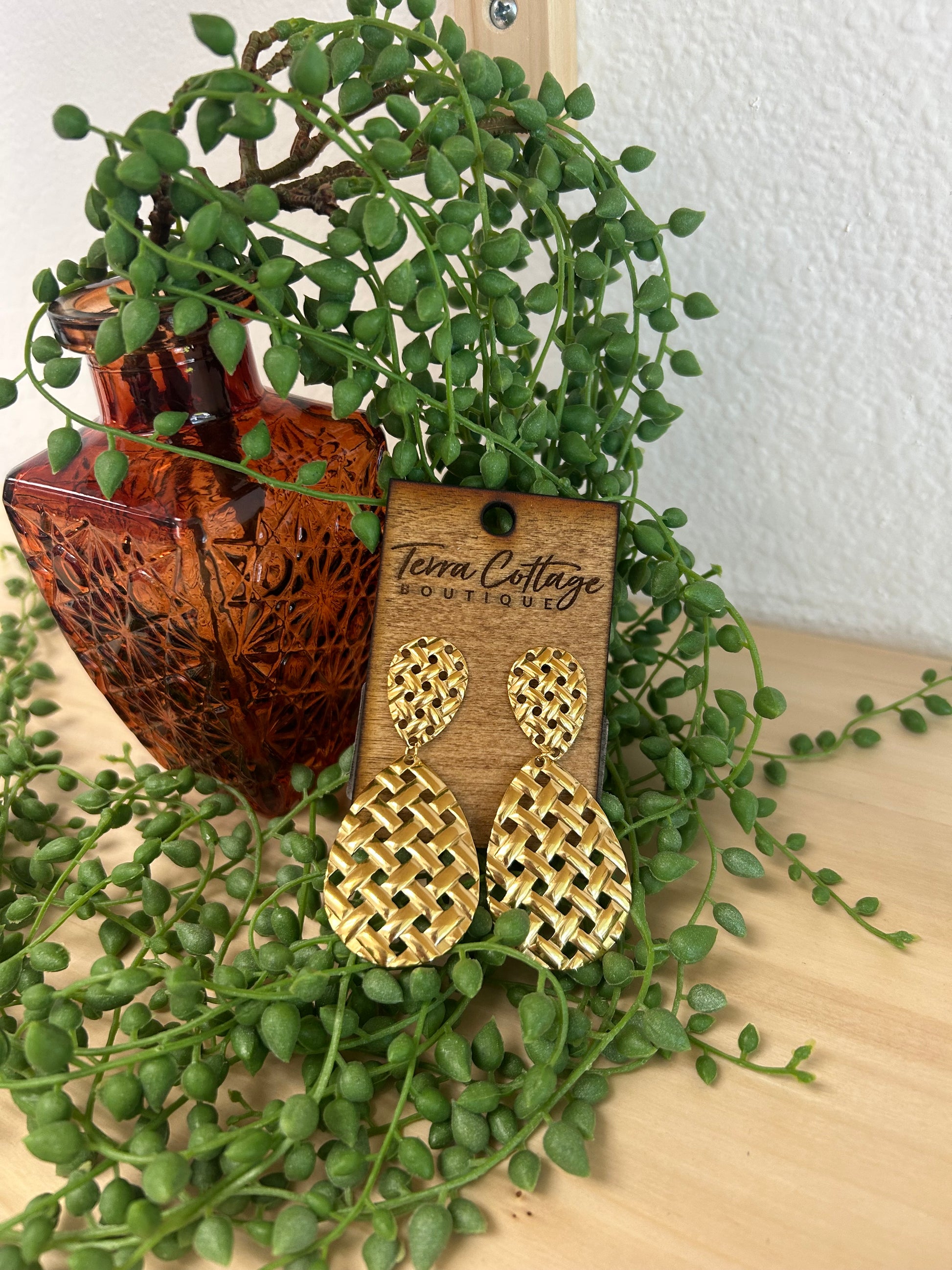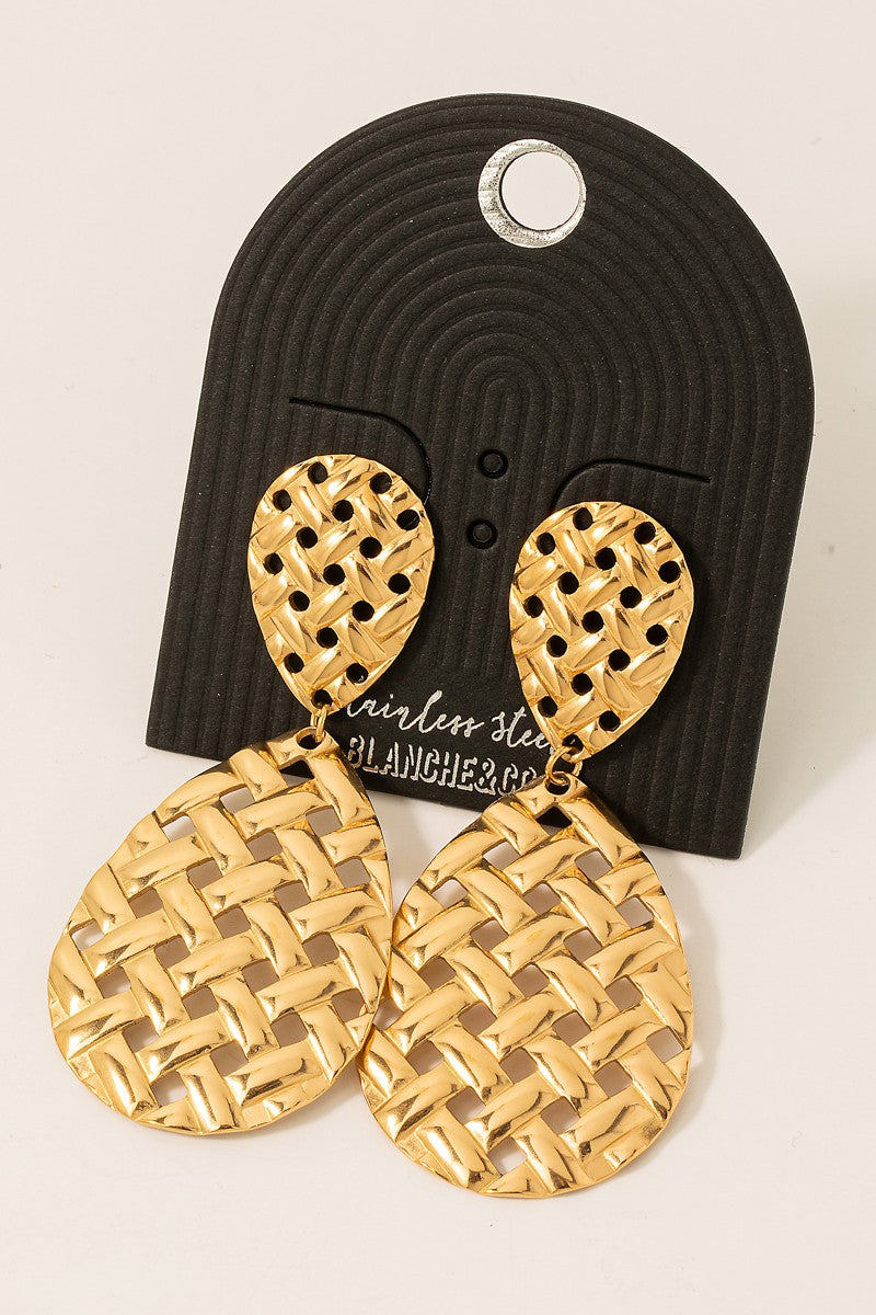 Elevate your accessories collection with our Metallic Braided Tear Dangle Earrings.