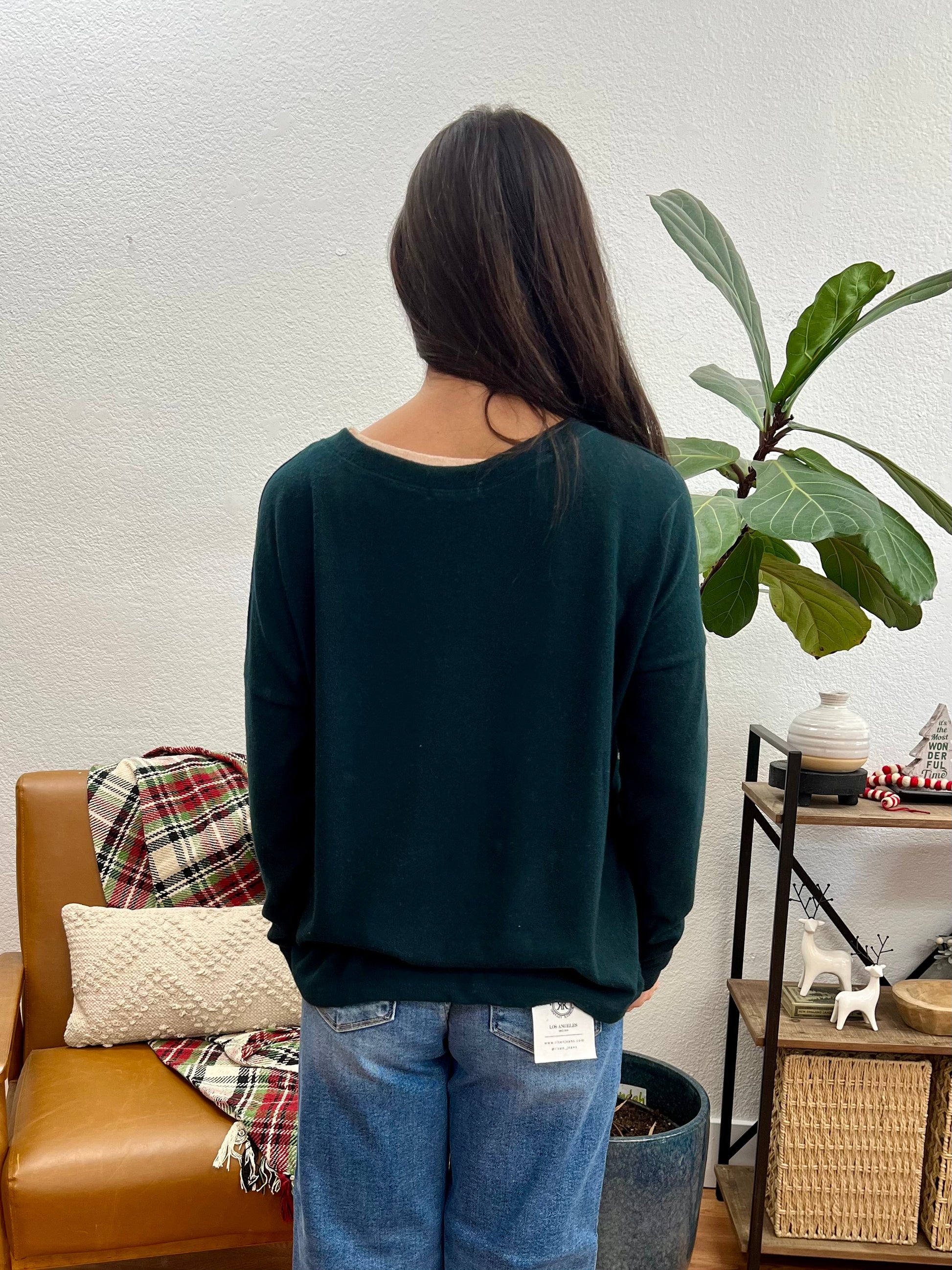 This Hunter Green Soft Crew Neck features a rich forest green hue with ultra-soft fabric construction and classic crew neckline that brings cozy comfort to any casual wardrobe. The relaxed oversized fit and lightweight material create easy all-day wear, while the simple silhouette and long sleeves add versatile appeal perfect for everyday styling.