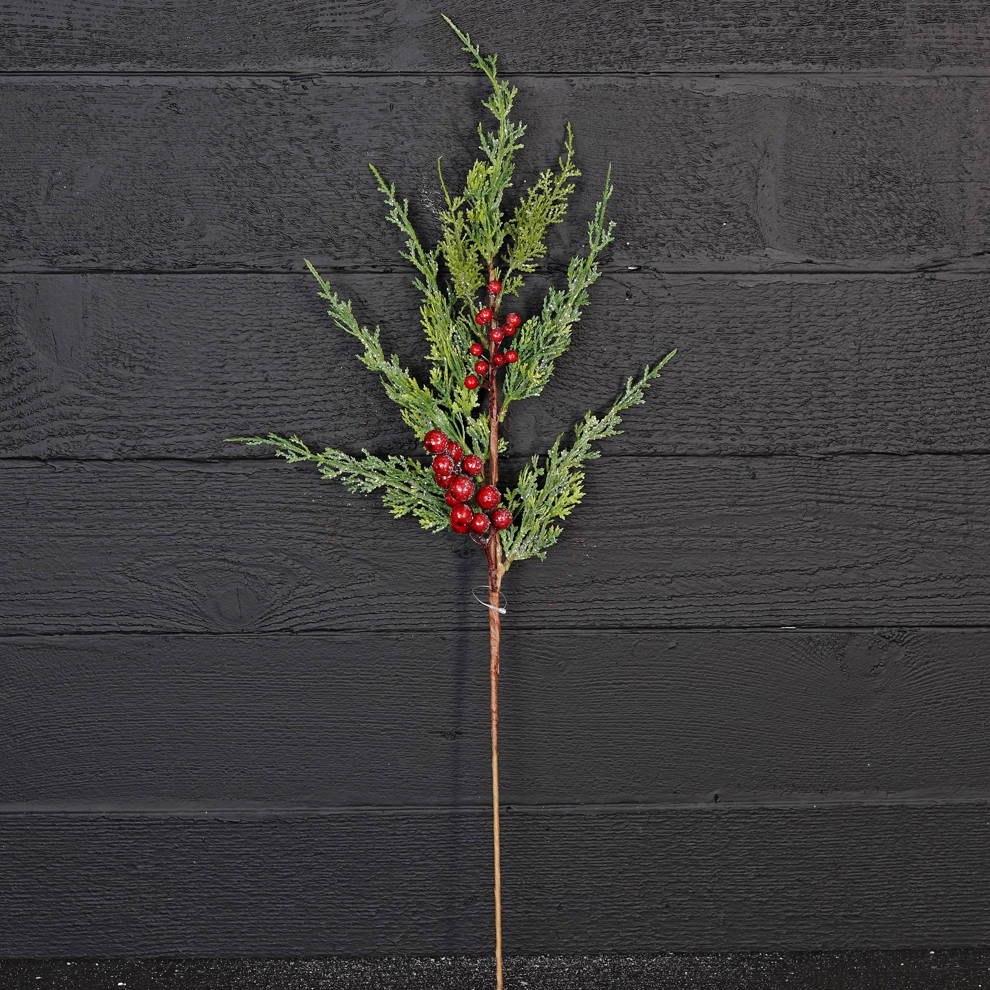 This spray features realistic icy foliage paired with glossy berries on a sturdy stem that brings classic holiday elegance to your seasonal decor.