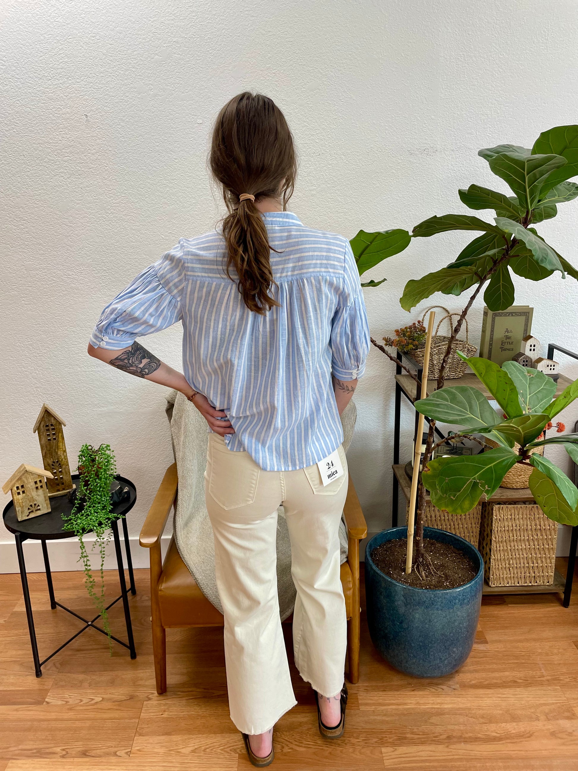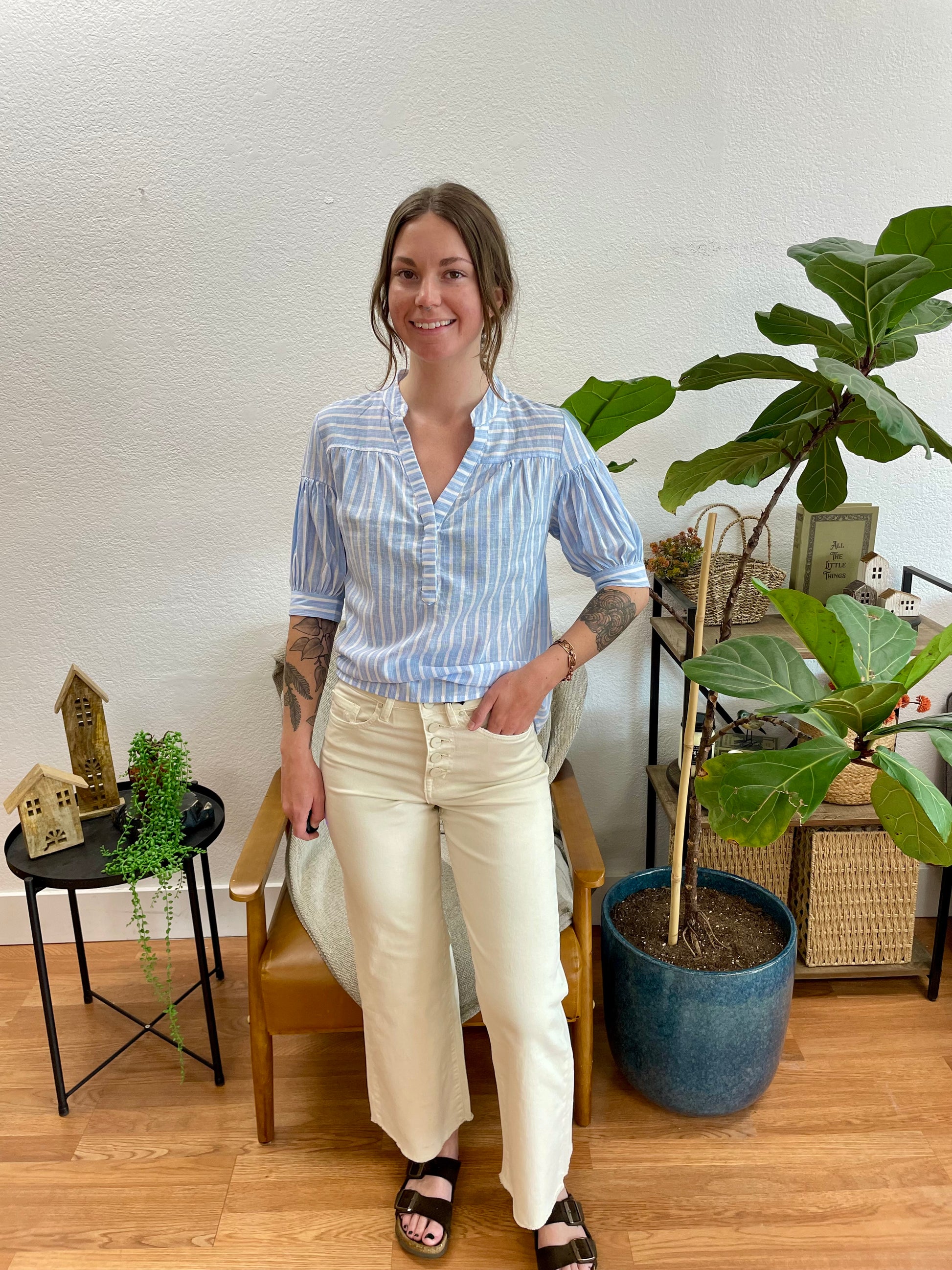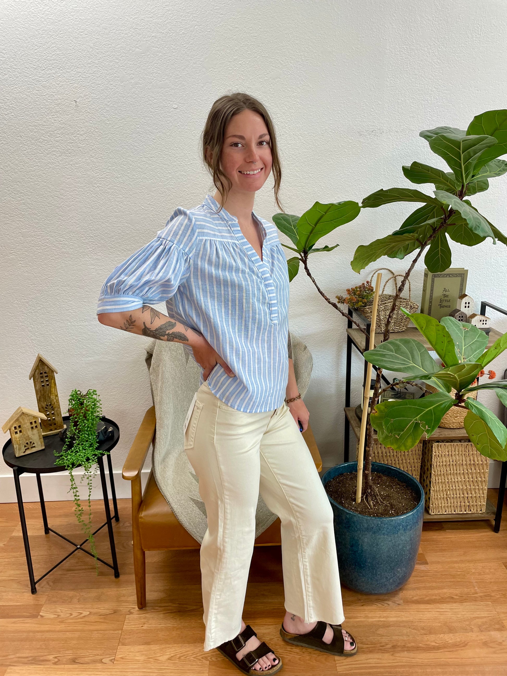 Tuck in a flowy striped blouse or a lightweight top and slip on sandals for a fresh, warm-weather look just like shown, or style them with a fitted tank, a cropped knit, or a linen blazer for something with a little more dimension. The warm white tone pairs beautifully with every color imaginable, from soft pastels and warm earth tones to bold prints and rich jewel tones, making these a truly essential piece you will reach for constantly all year long.