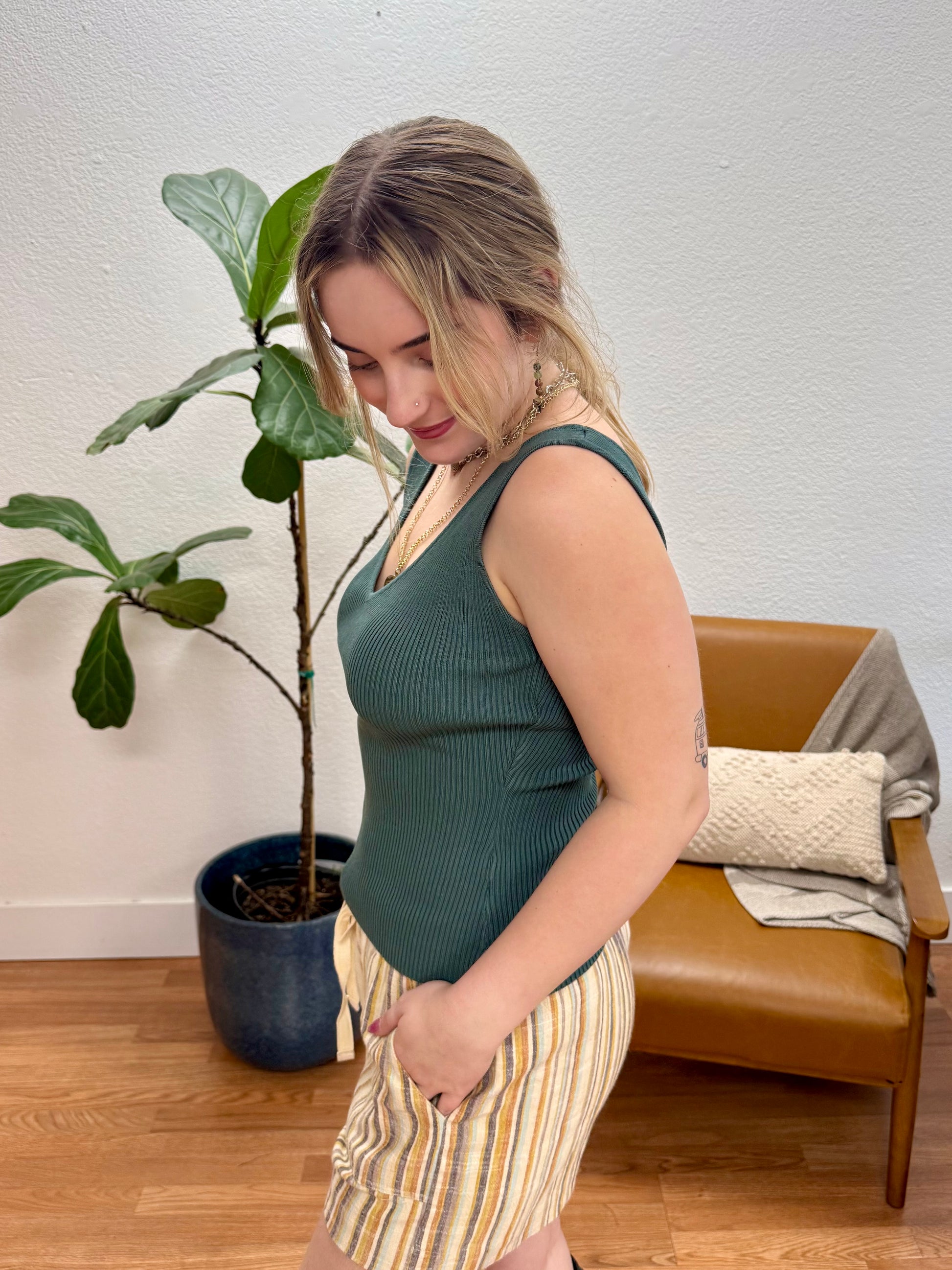 Our v-neck ribbed tank is a closet essential you’ll reach for again and again.