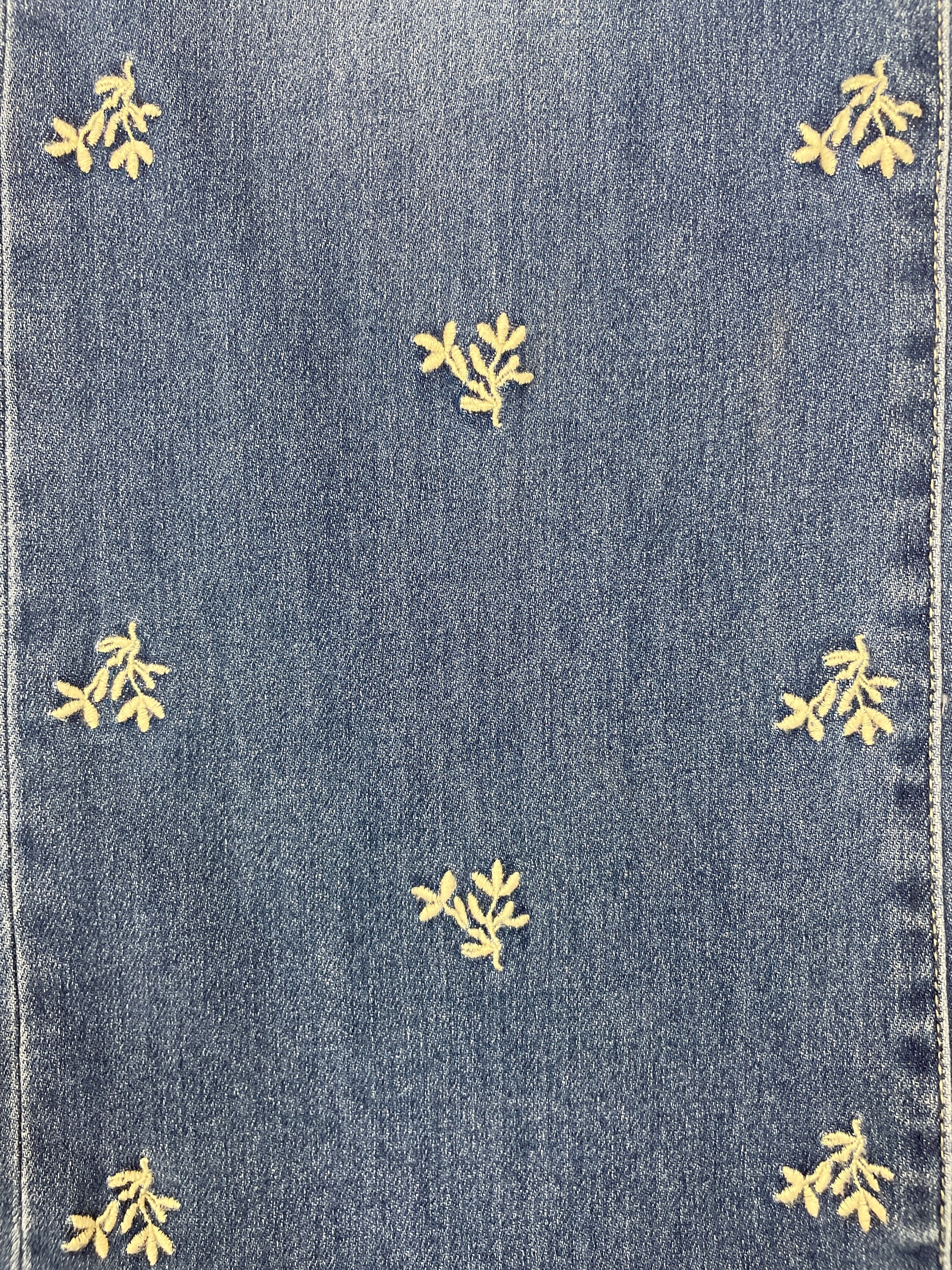 The classic medium wash provides timeless denim appeal, while the delicate embroidered florals add whimsical feminine detail and artisan character and the wide leg crop creates modern flattering silhouette, making them perfect for those seeking a wardrobe staple that combines embellished denim styling with contemporary wide leg design and effortless everyday comfort.